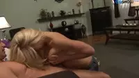 Para zabawia się najpierw oralnie. Przystojniak robi jej minetę, gdy rozkraczona siedzi przed nim. Ona robi mu loda. Potem seksowna blondi rozkłada nogi, a on penetruje jej cipę. Następnie, wypina się, a kolega rucha ją od tyłu w pozycji na pieska. Spuszc