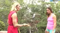Dojrzała MILF kokietuje młodszą brunetkę. Podniecone dotykają się czule. Stara liże pizdę młodszej kochance. Potem rozkłada nogi, a koleżanka robi jej palcówkę. Ocierają się pizdami i doprowadzają do orgazmu rozkraczone, podczas wzajemnej masturbacji.